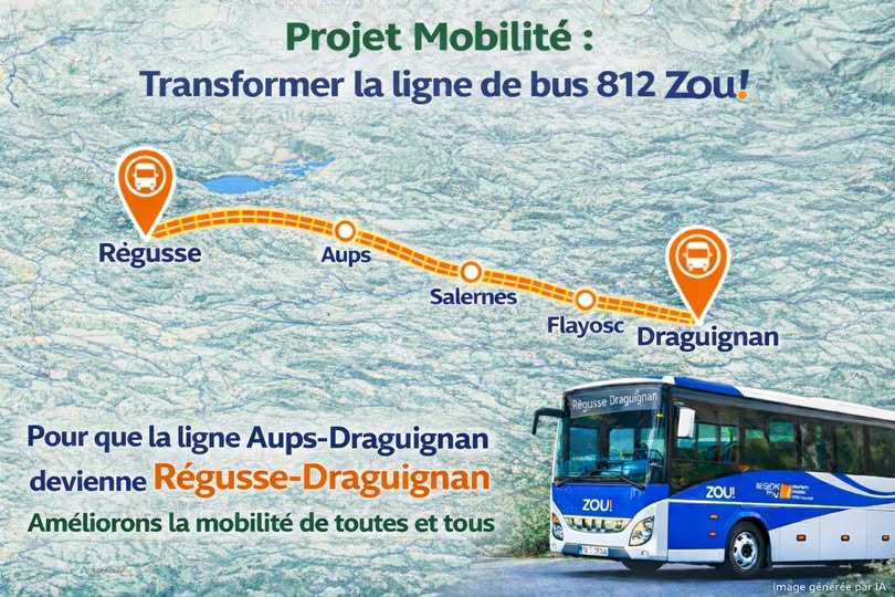 Projet : Améliorer la mobilité à Régusse, ça signifie quoi concrètement ? Imaginez une ligne régulière annuelle avec plusieurs allers-retours dans la même journée pour se rendre à Aups, Salernes ou encore Draguignan. On peut